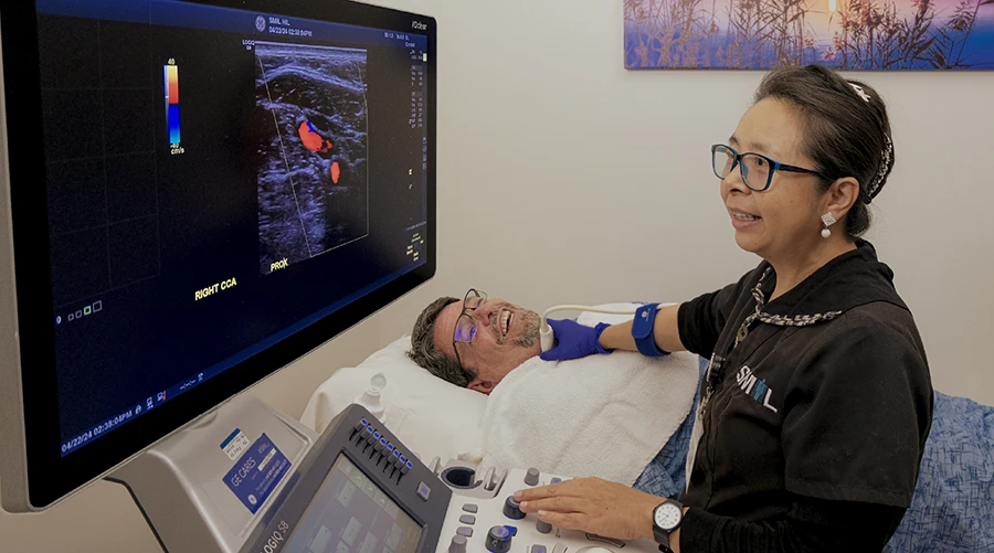 Ultrasound is invaluable to physicians in determining the risk factor of stroke or embolism by detecting the presence of plaque or blood clots.